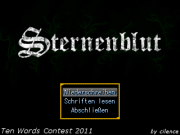 | 00:38, 17. Jan. 2020 | Sternenblut Title.png (Datei) | 25 KB | Cedar | Titelbildschirm aus Sternenblut von Cilence | 1 | |