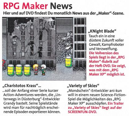 Bildmaterial aus Spielen, Demos, [[TechDemo]]s und Script-Releases, die mit einem RPG Maker für Windows erstellt wurden. | Bildmaterial aus Spielen, Demos, [[TechDemo]]s und Script-Releases, die mit einem RPG Maker für Windows erstellt wurden. | ||